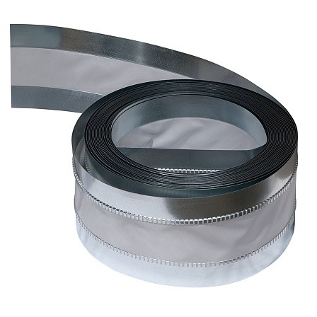 Термостойкая лента представляет собой комбинацию полос оцинкованной стали — стекловолокна — оцинкованной стали, герметично соединенных между собой. Лента изготовлена с применением негорючей ткани с огнезадерживающим покрытием, обладающей высоким сопротивлением к истиранию.