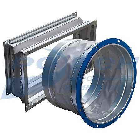 Вставки гибкие прямоугольные предназначены для предотвращения передачи вибрации от вентилятора к воздуховоду и применяются в вентиляционных системах, перемещающих воздух в интервалах температур от -45°С до +80°С.